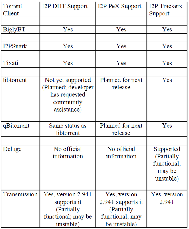 Furthermore, no modifications are required to make existing or future torrents compatible with I2P.